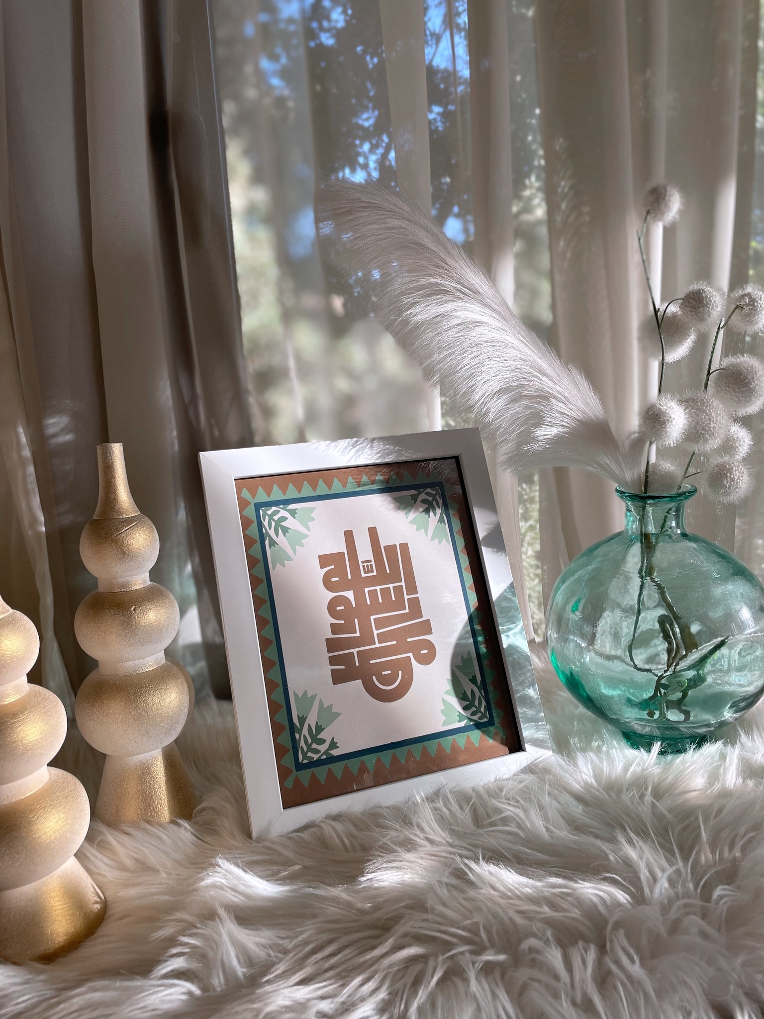 Featuring the beautiful Arabic calligraphy of “محمد رسول الله”, this framed poster is a timeless addition to your home décor.