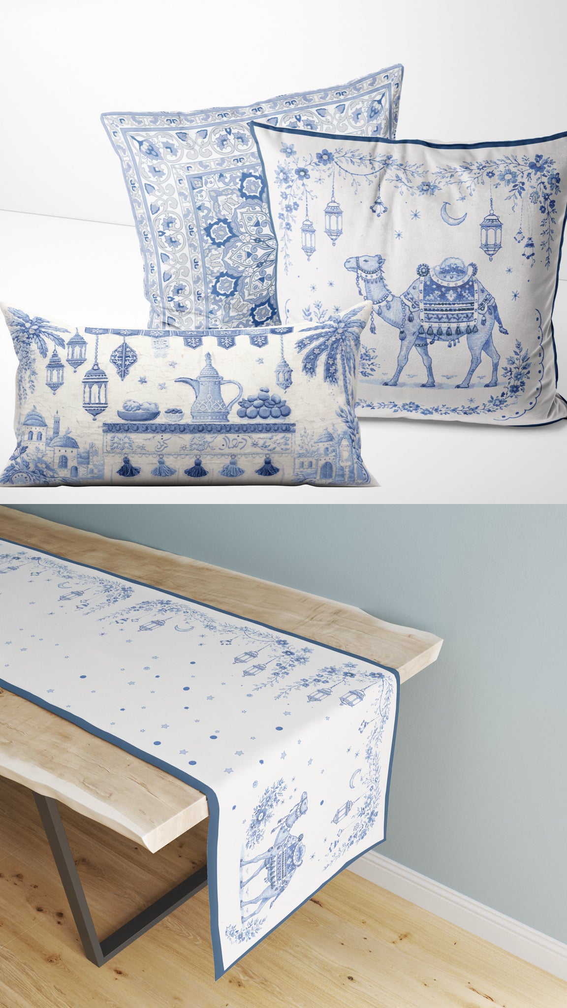Bleu Blanc - Ramadan Edition - Set of 3 cushion covers + table runner